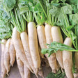 An Asian favorite for pickling but also amazingly eaten fresh! This radish is buried deep in the ground to loosen and amend the soil texture without tilling. This variety will help add nitrogen to the soil as it grows, adding nutrients so you don't have to! Grow these in the early spring or fall for a bountiful crop. Roots grow 5-8 inches long and some can get even larger.